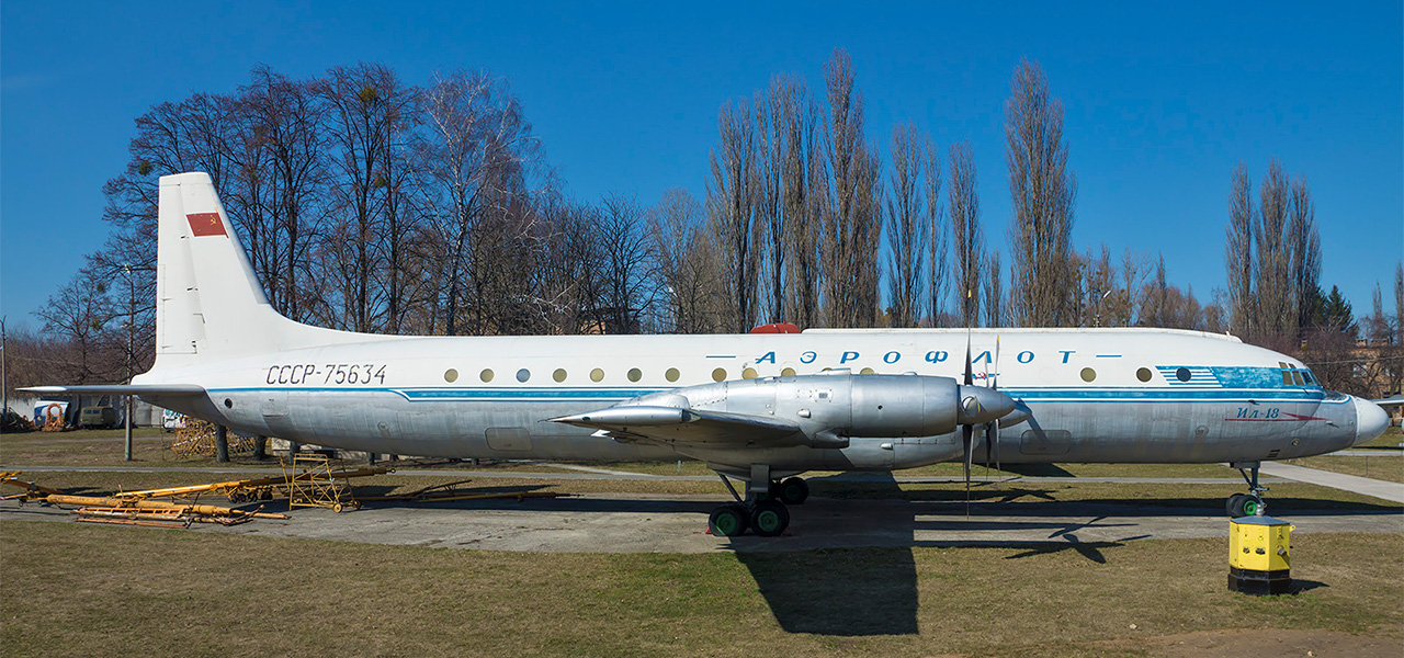 Long-haul passenger airplaneIL-18 first rose in air in 1957. This first soviet turboprop airplane was not such rapid as its peer Tu-104, nevertheless it appeared surprisingly reliable and economical – it still has no rivals in economy of fuel. That is why a few machines fly till today in Air Force and on charter flights. There is the first serial model of this long-range passenger liner in the museum – IL -18А. An airplane has four propeller turbines with power of 4 thousand horsepowers each, and transports 89 passengers in the distance to 4800 kilometres with cruising speed of 650 kilometres per hour.
