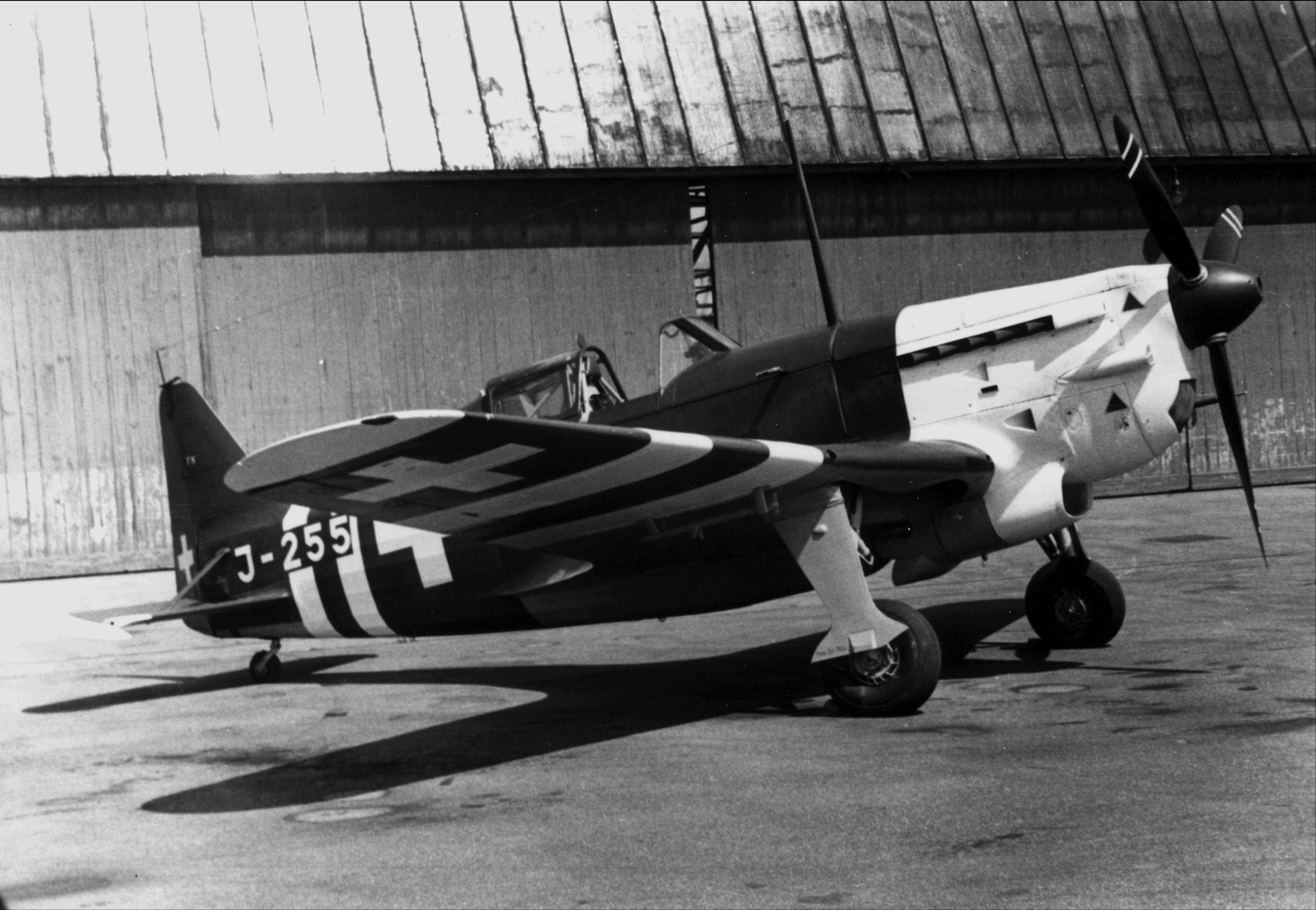 Serial production in France continued until June 1940. In addition, licensed production was established in Switzerland, where it was completed in 1944. A total of 1,176 units were built. The serial MS406 was equipped with a Hispano-Suiza 12Y-31 V-12 liquid-cooled engine with a power of 760 hp. The aircraft had a length of 8.17 m, a wingspan of 10.61 m, a maximum take-off weight of 2,540 kg, a maximum speed of 490 km/h, and a range of up to 1,100 km. Its armament consisted of one 20 mm cannon and two 7.5 mm machine guns.
