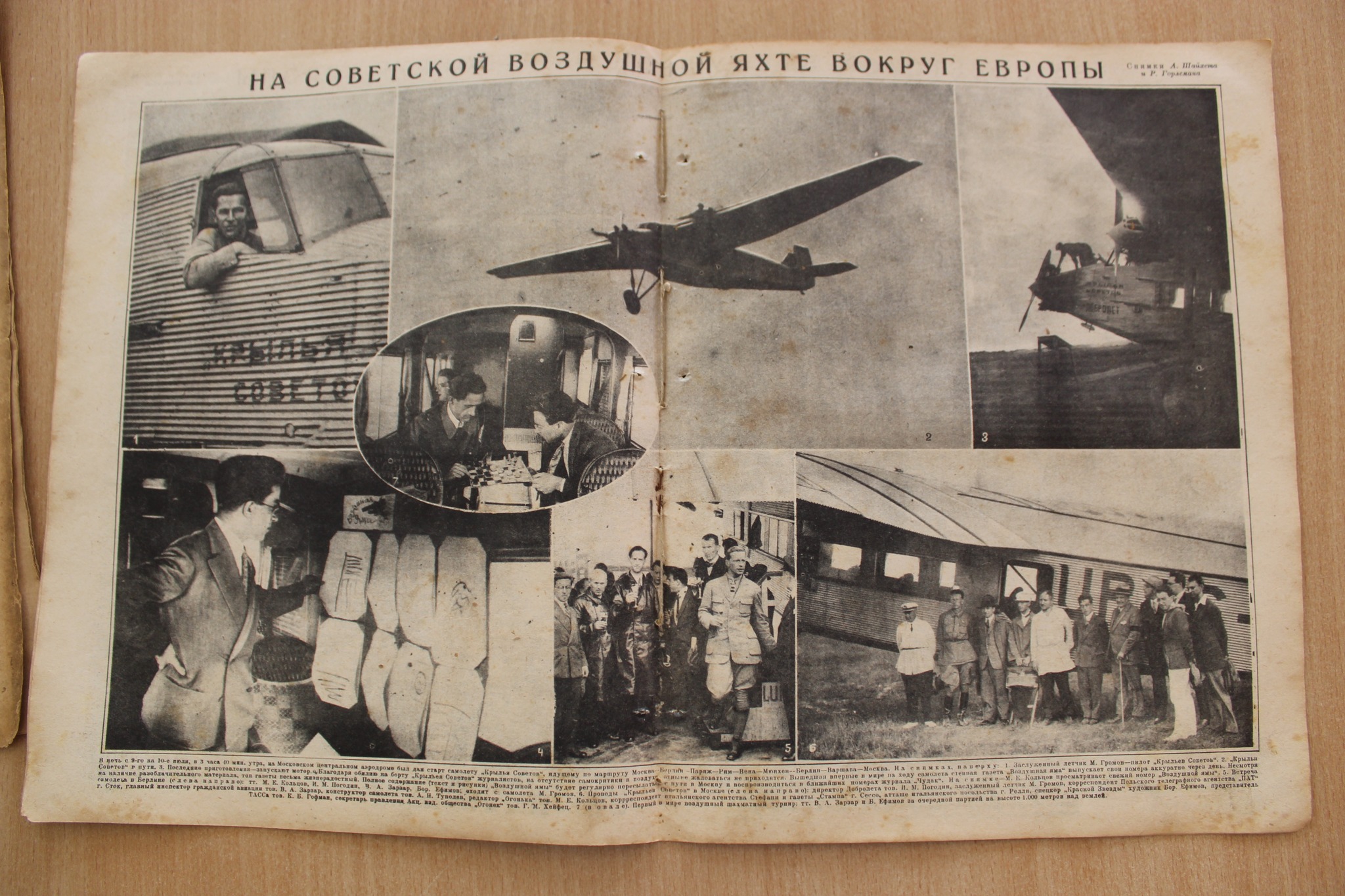 - Two issues of the magazine Ogonyok (1929) with articles about the USSR's aviation propaganda campaigns — the journey of the squadron “Our Answer to Chamberlain” and the flights of the air yacht “Wings of the Soviets.” These materials remind us that aviation played an important propaganda role in totalitarian states.