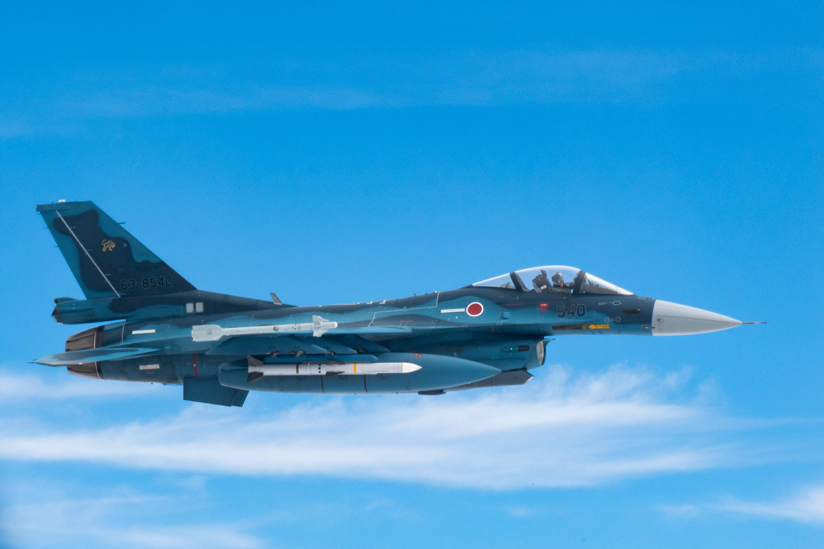 The F-2 entered service in 2000. The fighters have repeatedly participated in international military exercises. In addition, they regularly intercept Russian military aircraft flying near Japanese territorial waters.