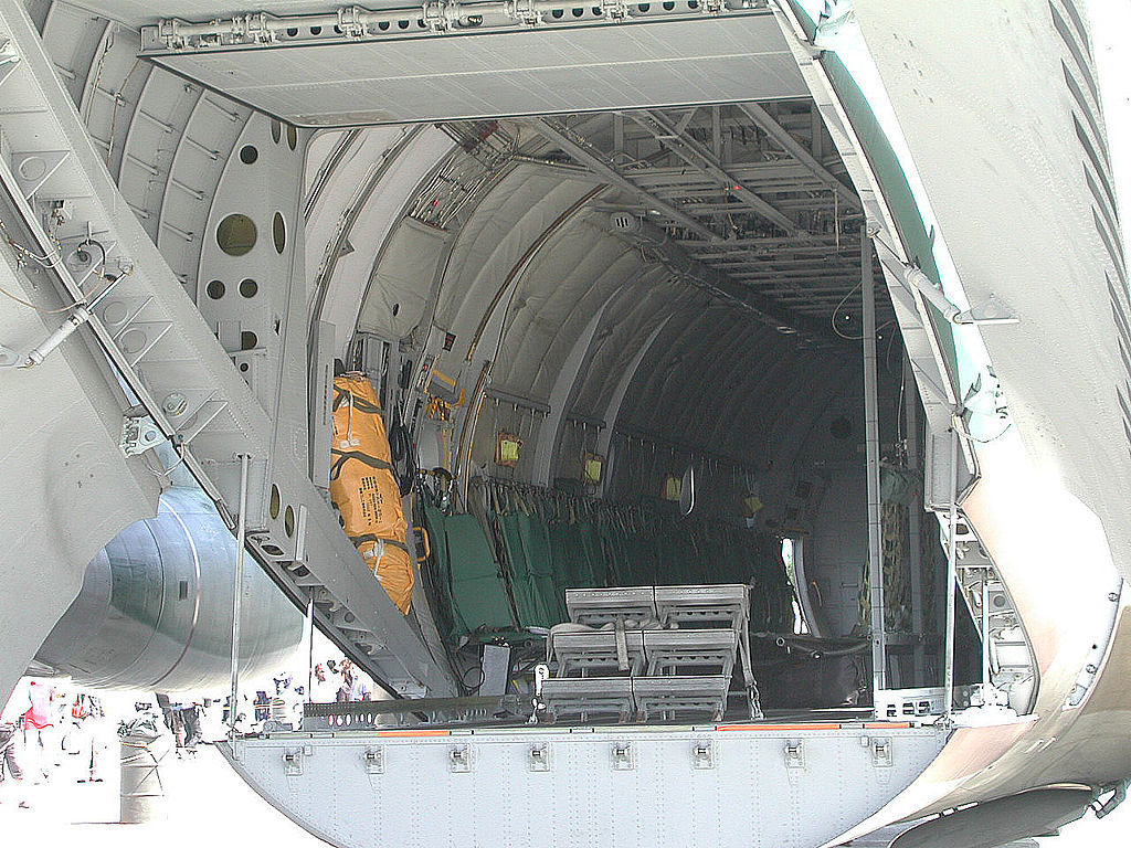 The S-1 was equipped with two Pratt & Whitney JT8D-M-9 twin-circuit turbojet engines with a thrust of 6575 kgf each, which were also manufactured by Mitsubishi under an American license. The aircraft was 29 m long, with a wingspan of 30.6 m, a maximum take-off weight of 38,700 kg, a maximum speed of 806 km/h, and a practical range of 1,300 km when fully loaded. It could carry 60 soldiers in full gear or 8,000 kg of cargo.