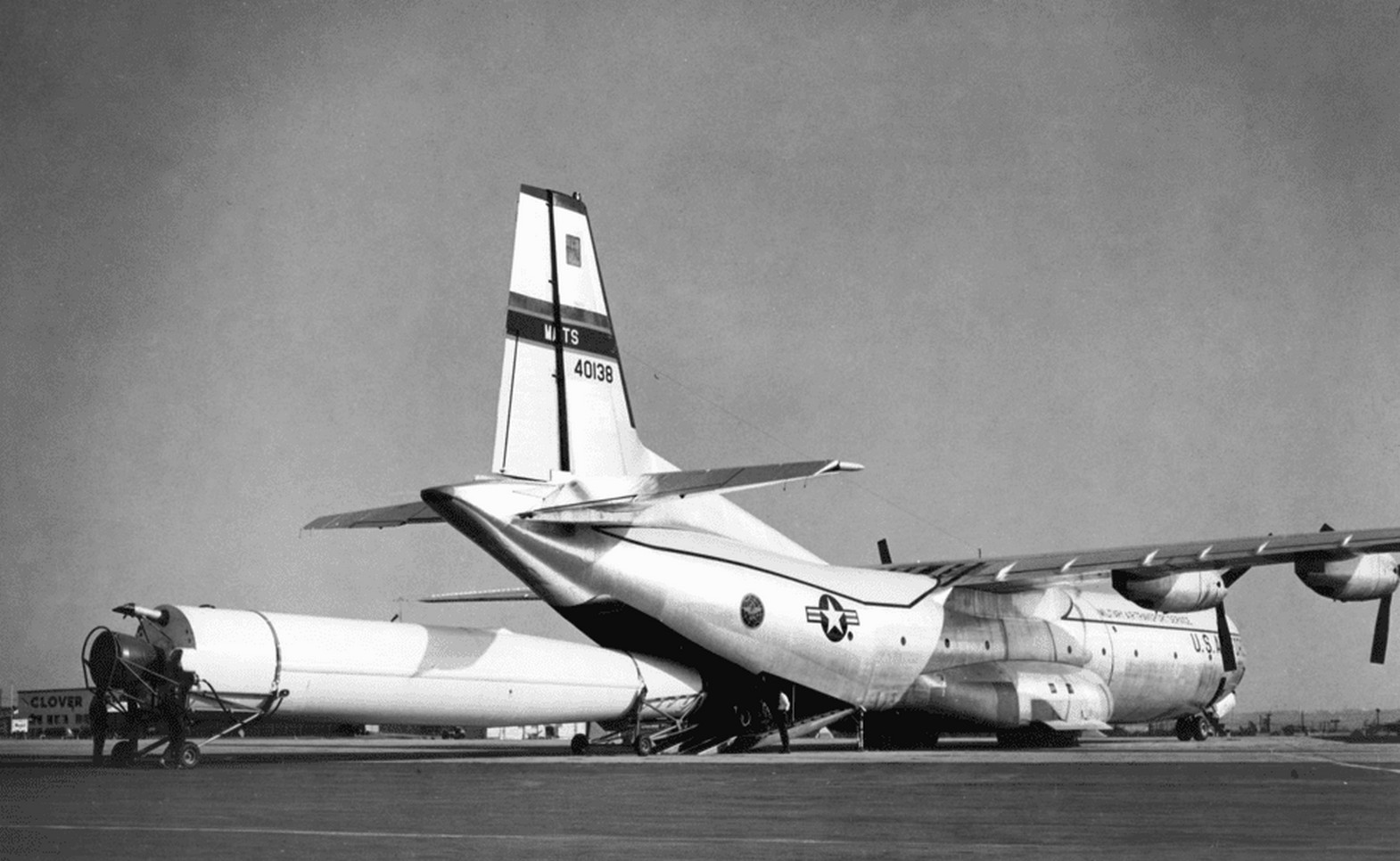 At the time of its creation, the C-133 was the largest military transport aircraft (MTA) in the world. The large, pressurized cargo compartment, 27 meters long and 3.7 meters wide, allowed for the transport of a wide range of military equipment, including not only tanks and large-caliber guns but also Atlas, Titan, and Minuteman intercontinental ballistic missiles. The fuselage had two large cargo hatches: one with a ramp in the tail section and one on the left side in the forward section. In addition to cargo, the aircraft could carry up to 200 fully armed soldiers.