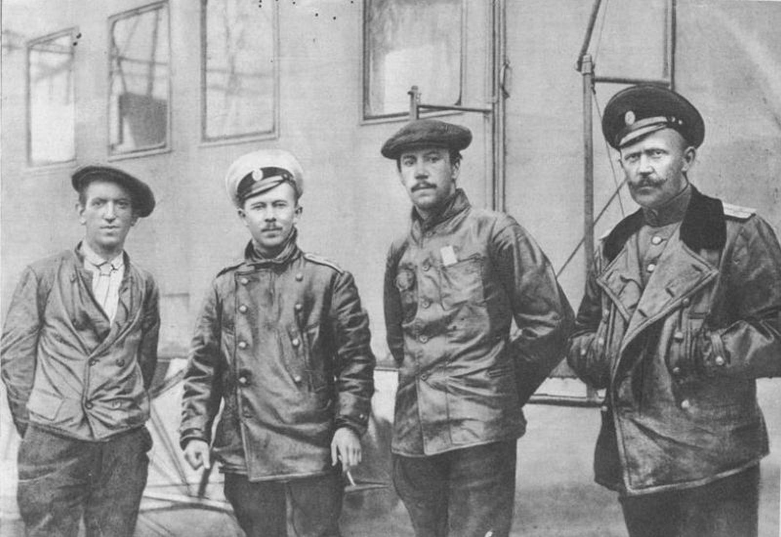 2 - The flight participants in front of their plane (from left to right): Vladimir Panasyuk, Georgy Lavrov, Igor Sikorsky, and Christian Prussis
